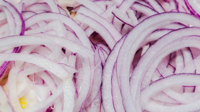 - 玉ねぎを薄切りにする