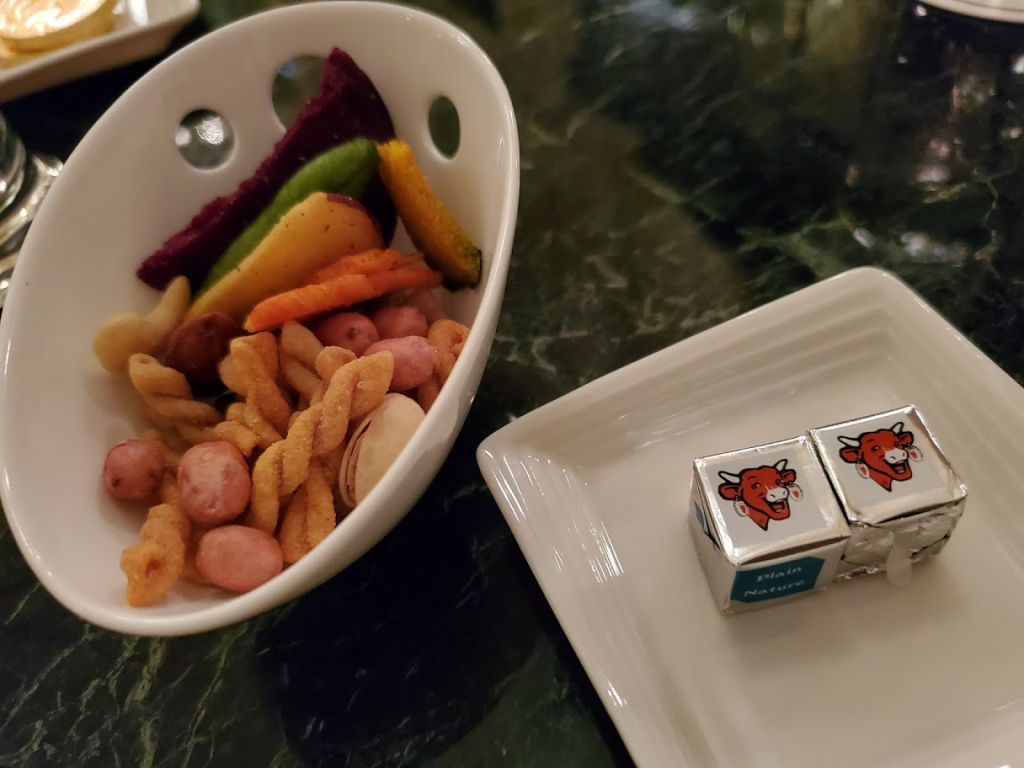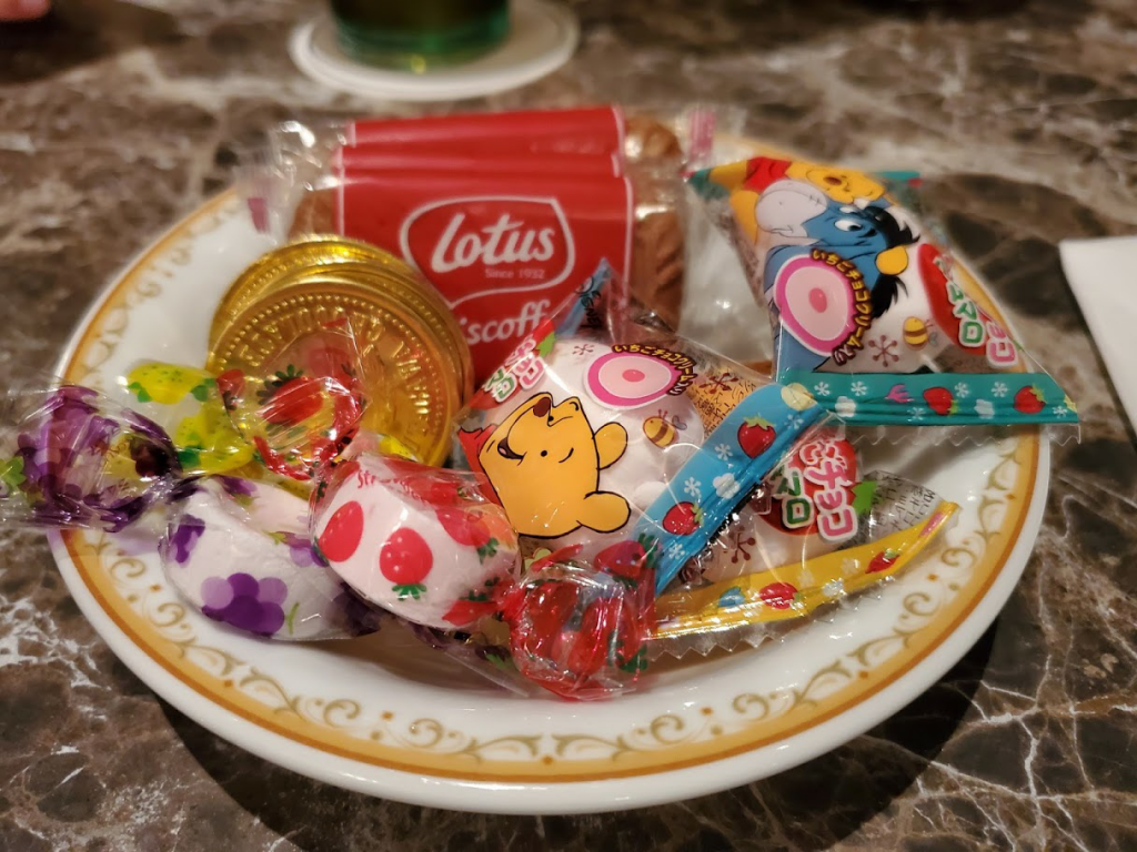 手続きの間、お菓子の盛り合わせとソフトドリンクを頂けます。