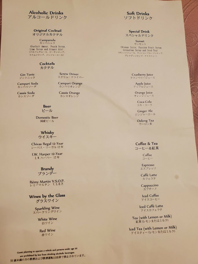 19時前にはイクスピアリへ夕飯に行ったのですが、待ち時間がありマーセリンサロンのカクテルタイムに行く時間が、閉園の20分位前になってしまった為、前に1組待っていました。
